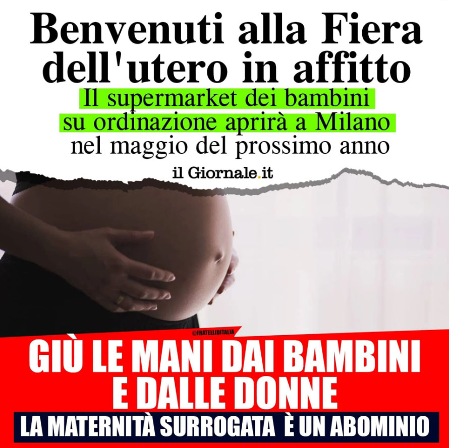Verrebbe così strumentalizzato il diritto dei bambini ad avere dei genitori, all'interno della libera circolazione nell'Unione “dimenticando che quei 'genitori' - dice l’europarlamentare - hanno magari comprato quegli stessi bambini, dopo aver ridotto una donna indigente a vendere il suo corpo, in questo orribile mercimonio della vita”. Proprio in queste settimane, la proposta di Regolamento è al vaglio del Consiglio UE, mentre l’europarlamento sta definendo i suoi relatori per il parere che sarà chiamato ad esprimere. “Dove sono le femministe, quando la donna è solo strumento di procreazione? Siamo arrivati alla colonizzazione dell’utero? Che dicono le sinistre dei bambini "prodotti" in questi laboratori per soddisfare il consumismo di ricche coppie occidentali?”, si chiede ancora la prima firmataria dell’interrogazione. “Mi sembra chiaro – conclude la Baldassarre - che la maggioranza Ursula qui a Bruxelles sia ogni giorno di più una prigione per tutti quei moderati che mettono al centro il valore dell'essere umano e quello della Vita, non quello del mercato. Bisogna far conoscere ai cittadini dell'Europa la verità. Questa UE, che non rispetta il volere dei Cittadini e dei Suoi Popoli, non è democratica e va cambiata". Oltre al Dipartimento Difesa Bambini e Famiglia anche la Onlus Pro Vita e Famiglia è schierata contro la proposta della Commissione Ue sulla “genitorialità transfrontaliera” che “se passasse, - spiega Jacopo Coghe - imporrebbe gli effetti dell’aberrante e inumana pratica dell’utero in affitto, ad oggi illegale nel mondo e in Italia, o dell’adozione per coppie dello stesso sesso o della fecondazione eterologa”. Secondo Coghe l’unico “interesse superiore” di un bambino è quello di avere una mamma e un papà “e solo in questo senso va letta la genitorialità transfrontaliera, non con altre aperture o interpretazioni che vorrebbero riconoscere i membri di una coppia di omosessuali come ‘genitori’”.